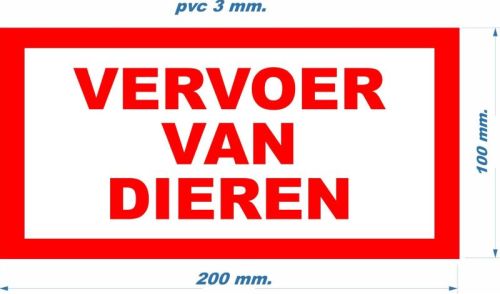 Bord PVC "VERVOER VAN DIEREN" 10cmx20cm