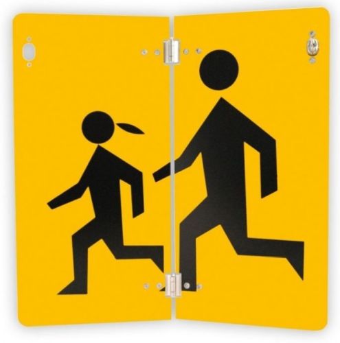 "Informatiebord "Opgepast vervoer schoolkinderen" Het bord informeert over het vervoer van jongeren ? Afmetingen: 300x300mm ? Het bord is bedekt met reflecterende folie ? Bord dat in het midden kan worden gevouwen ? Gewicht per stuk: 0,25 kg ? Aluminium"