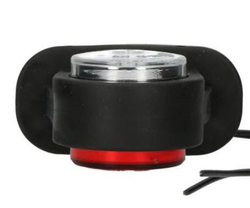 "9-36V. Rood/wit. Kort model. Geheel rubber. Lensunit voorzien van 2 LED's en van 0,3 m kabel. Voorzien van E-keur en voldoet aan EMC. IP68. Diameter lens: 47mm ? Lengte: 78mm Hartafstand 4 gats: 71x29mm Hartafstand 2 gats: 83mm "