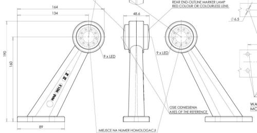 Breedtepaal 18LED "contour" rood/wit 19cm schuin 12V/24V