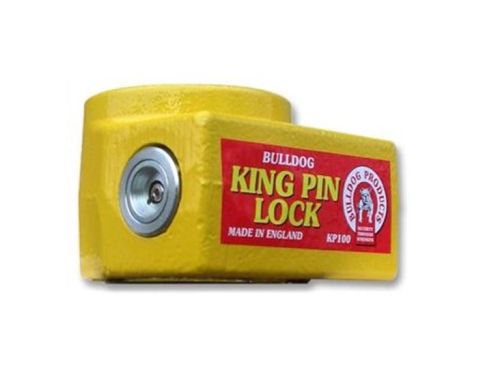 "Kingpin slot - Past op alle standaard 2 inch koppelpennen. Duidelijk zichtbaar door felle gele kleur. Fleetkeying is mogelijk op aanvraag. Tevens is een afdekplaat voor de bouten van de koppelpen verkrijgbaar. SCM/TNO goedgekeurd volgens keuringsvoorschrift SCM directive MP03 van stichting certificering motorrijtuigbeveiliging, Goedkeuringsnummer MP030416. "