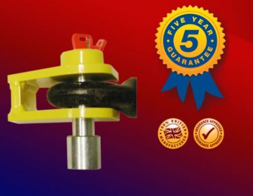 "Trekoogslot, oogdikte 50 mm - Voor aanhangwagens met triangel. Voor trekogen met een diameter van 25 tot 65 mm ?. SCM/TNO goedgekeurd volgens keuringsvoorschrift SCM directive MP03 van stichting certificering motorrijtuigbeveiliging, Goedkeuringsnummer MP030417. Fleetkeying mogelijk op aanvraag. "