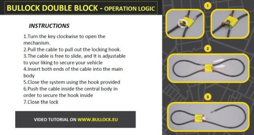 "Bullock? Dual ? Hoogwaardig Bullock Dual kabelslot ? Ontworpen voor maximale bescherming van tweewielige voertuigen ? Verstelbare sluiting: met een verstelbare sluiting die perfect past op Fatbikes, scooters ,fietsen, step. ? Met dubbele vergrendeling om de veiligheid te vergroten ? Ook ideaal in gebruik om bijvoorbeeld uw fietsen achterop een fietsendrager extra te beveiligen. ? Breedte : 1cm ? Lengte slot : ca 120cm Levering : Slot 2 sleutels"
