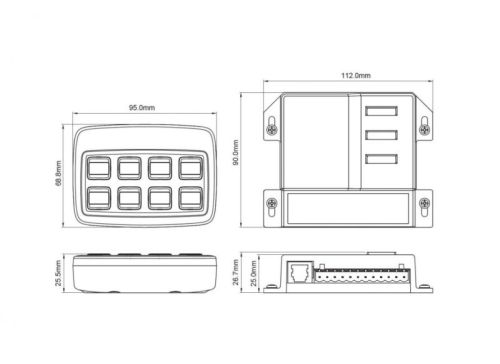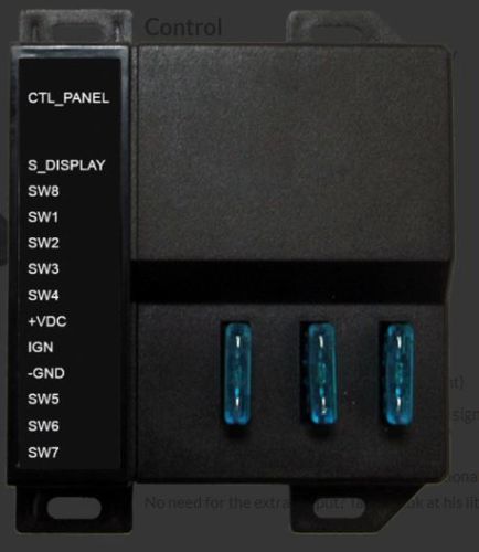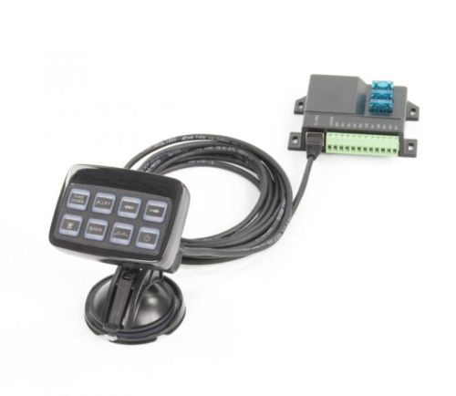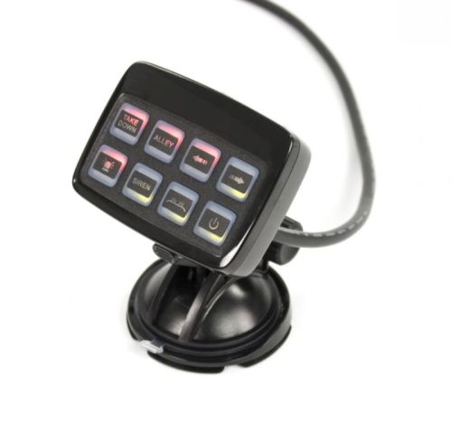 "8 programeerbare toetsen (On/Off en moment) LED-indicatoren voor Lightbar of Traffic Advisor signaalweergave Rubberen toetsen met mapping functie. 3 x 10 Amp uitgangen en 5 x optionele relaisaansluitingen Voeding