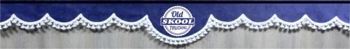 > DL Voorraamgordijn "Old SKOOL TRUCKING" Blauw + franjes