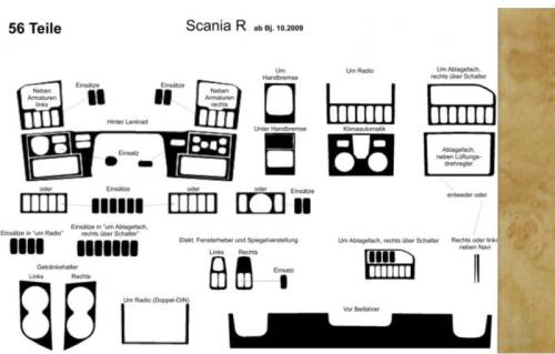 Past enkel voor het GEBOGEN dashboard achter het stuur / 56-delig / Met automatische airco Scania R2-Reihe CR16 2009 - Scania R2-Reihe CR19 2009 - Scania R2-Reihe CR19H Highline 2009 - Scania R2-Reihe CR19L Flachdach 2009 - Scania R2-Reihe CR19T Topline 2009 -