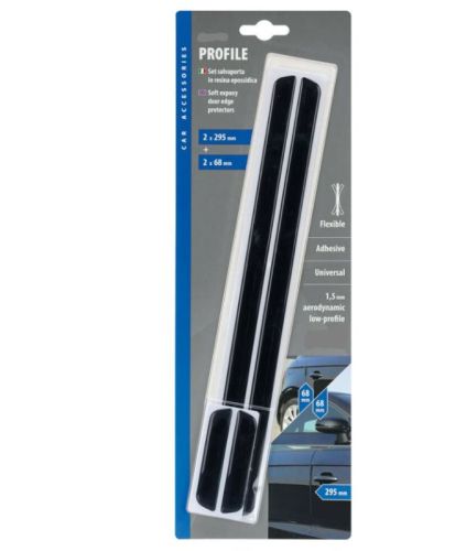 "? Zwarte, zachte epoxy deurrandbeschermers, set van 4 stuks - Zwart ? Bescherm de autolak tegen onbedoelde contacten ? Speciale lijm voor een perfecte pasvorm ? 2x 14x295 mm + 2x 14x68 mm, dikte 1,5 mm"
