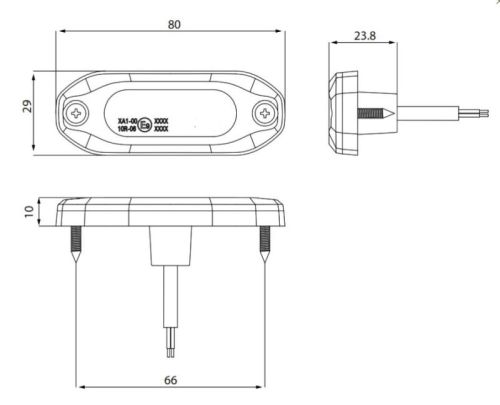 "? 3 ORANJE LED's ? Bedrijfsspanning: 10-30V DC ? Verbruik: Van 6,2W tot 9W (afhankelijk van kleur en patroon) ? Knipperfrequentie: 10 knipperpatronen ? Type bescherming: IP69K ? Synchronisch en asynchroon ? 8cm x 2,9cm x 1cm"