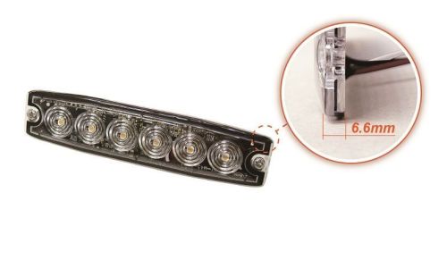"Ultradunne LED-flitser 6-LED?s ORANJE / 130,5x30x6,6mm / opbouw / 12V+24V / 23 flitspatronen - ECE R65 / Slechts 6,6mm opbouwhoogte !! "