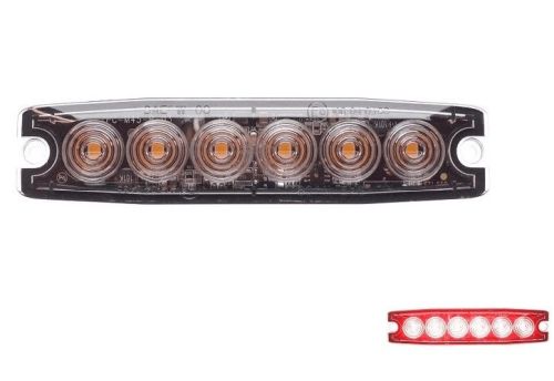"Ultradunne LED-flitser 6-LED?s ROOD / 130,5x30x6,6mm / opbouw / 12V+24V / 23 flitspatronen - ECE R65 / Slechts 6,6mm opbouwhoogte !! "