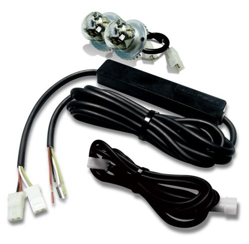 "12-30 Volt DC 19 verschillende flitspatronen 9 x 3W LED?s per LED lamp Verbruik : 12,8 V : 1,2 Amp 24V : 0,7 Amp Complete KIT bestaande uit : 2 LED ?lampen?, kabel en compacte sturing "