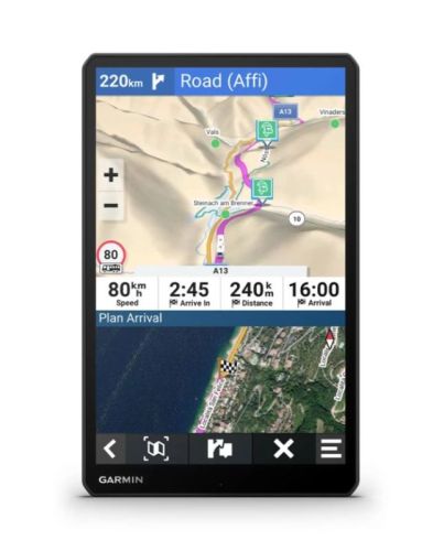 "Met Camper 1095 ga je op reis met een extragroot scherm, aangepaste routebepaling1 voor de afmetingen en het gewicht van je voertuig, plus levendige luchtfoto's die je helpen probleemloos op het camperterrein of camping aan te komen. Dit gebruiksvriendelijke 10" GPS-satellietnavigatietoestel beschikt over een helder touchscreen met hoge resolutie, zodat je belangrijke route-informatie eenvoudig kunt zien. Camper 1095 houdt rekening met de afmetingen en het gewicht van je camper of caravan en zoekt vervolgens een aanbevolen route1. En je kunt ook profielen voor meerdere voertuigen of aanhangers opslaan. Je wordt op tijd gewaarschuwd voor steile hellingen, scherpe bochten, gewichtsbeperkingen en nog veel meer. Met gedetailleerde informatie over hoogteverschillen op je route kun je jezelf voorbereiden op steile hellingen. Bekijk haarscherpe luchtfoto's die je helpen probleemloos op je camperplek of camping aan te komen. Bekijk suggesties voor avontuurlijke tochtjes of schilderachtige wegen. Bekijk een overzicht van je gehele resterende route naast je actieve route. Wanneer je de Garmin Drive? app koppelt, kun je ook zien wat voor weer het verderop wordt. Maak je reis eenvoudiger met een vooraf geladen lijst met camperparkeerplaatsen en -services van ACSI?, CamperContact? en Trailer's PARK?. Je kunt de lijst filteren op voorzieningen zoals douches, elektriciteit en meer. Koppel de Garmin Drive? app om eenvoudig routes te importeren en GPX-bestanden te delen. Ontvang begeleiding en waarschuwingen over milieuzones op de route. Routebeschrijving nodig? Zeg het gewoon. Het satellietnavigatietoestel Camper 1095 reageert op je gesproken instructies en navigeert vervolgens naar je bestemming. (Voice Assist is beschikbaar in het Engels, Duits, Italiaans, Spaans, Deens, Zweeds, Nederlands). Met behulp van de ingebouwde WiFi? connectiviteit werk je jouw kaarten en software eenvoudig bij zonder computer. Je krijgt een melding op het scherm wanneer nieuwe updates beschikbaar zijn. In combinatie met de Garmin Drive app helpt live verkeersinformatie je vertragingen te vermijden en omwegen te vinden. Bekijk onder andere ook gedetailleerde weersverwachtingen, de huidige weersomstandigheden en bewegende radarbeelden. Maak verbinding met de Garmin Drive? app voor updates van real-time brandstofprijzen op de route. Dankzij de ingebouwde draadloze Bluetooth? technologie kun je een compatibele smartphone synchroniseren met Camper 1095 om te kunnen bellen zonder je handen van het stuur te halen. Wanneer het navigatietoestel is gekoppeld aan de Garmin Drive app, zie je op het scherm van het toestel tekstberichten en andere meldingen van je telefoon. Bekijk beoordelingen van Tripadvisor reizigers voor hotels, restaurants en attracties, langs je route of in de buurt van je bestemming. Vind eenvoudig nieuwe winkels, restaurants en miljoenen andere populaire plaatsen met vooraf geladen nuttige punten van Foursquare?. DE MICHELIN GREEN GUIDE Deze vooraf geladen gids bevat afbeeldingen, gedetailleerde beschrijvingen en beoordelingen, zodat je weet of de attractie een bezoek waard is. Ontdek de beste plekken op je route met suggesties voor trendy plaatsen. Zoek lokale bezienswaardigheden en spannende activiteiten in de buurt van je huidige locatie met aanbevelingen voor lokale plaatsen. Je navigatietoestel bevat kaartupdates en wordt geleverd met een volledige kaart van Europa en Zuid-Afrika. Bovendien kun je via Garmin Express gratis kaarten downloaden voor Noord-Amerika, Zuid-Amerika, Australi? en Nieuw-Zeeland, het Midden-Oosten en Noord-Afrika. Koppel het Camper 1095 navigatiesysteem met onze BC? 50 draadloze achteruitrijcamera (apart verkrijgbaar) of een compatibele bekabelde camera van derden2, zodat je kunt zien wat er achter je gebeurt."