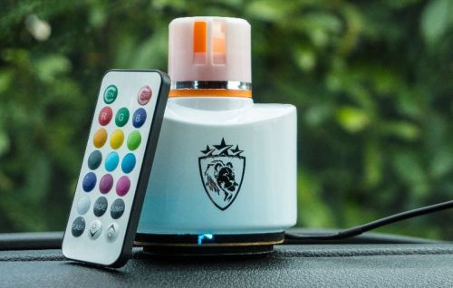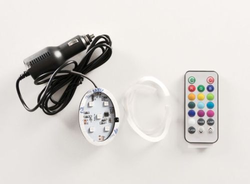 ?Zeer sfeervolle verlichting voor onder de Great-Lion car Fragrance flesjes ?Gemakkelijk te plaatsen op het dashboard ?Geschikt voor 10 ? 30 volt aansluitingen ?12 verschillende kleuren + wit en 3 verschillende standen ?Optie om feller te zetten of te dempen ?Werkt op meegeleverde afstandsbediening