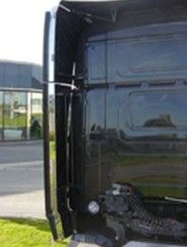 Voor Scania 4/R/R2 Topline/Streamline cabine / Bekleding inox voor linkse + rechtse zijspoiler / 10leds rood inclusief / 4-delig / montagemateriaal inbegrepen / voorbekabeld / vrachtwagens ZONDER rubber spoilers!