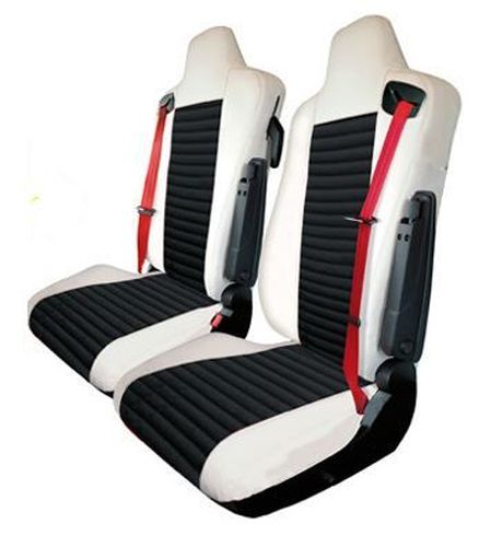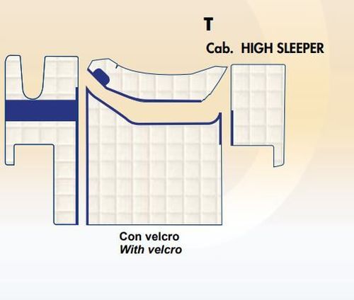 Voor Renault T High Sleeper (Chauffeurstoel met geintegreerde hoofdsteun + passagierstoel met geintegreerde hoofdsteun) / 2 maatwerk stoelhoezen + motorkapmat + vloermatten / Special edition / Zwart-blauw