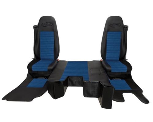 Voor Volvo FH4 >2013- / 2 maatwerk stoelhoezen + motorkap + vloermatten / Special edition / Zwart-blauw