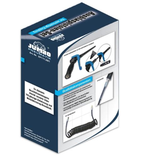 "Voor DAF XF105/XF105/XF2021->/XG2021->/XG+2021-> Voor Mercedes Actros MP4 / Mercedes Actros MP5 ? Luchtpistoolset ? Incl. Luchtslang van 5 meter ? Robuust afblaaspistool met regelbaar debiet ? 3 opzetstukken van kunststof: voor grote oppervlakken, voor nauwkeurig werken en een sterk luchtopzetstuk ? 5 m spiraalslang met permanente terugstelkracht en knikbeveiliging met koppelstekker"