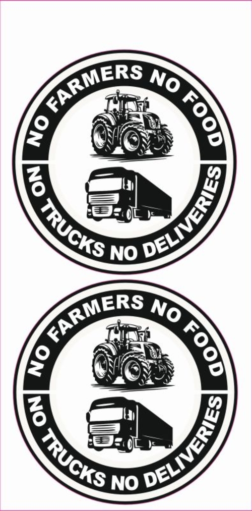 Kleverset 'No farms , No trucks' rond 10 cm 2 stuks