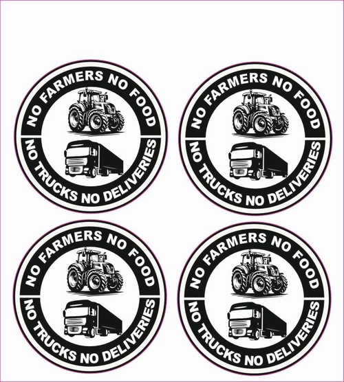 Kleverset 'No farms , No trucks' rond 5 cm 4 stuks