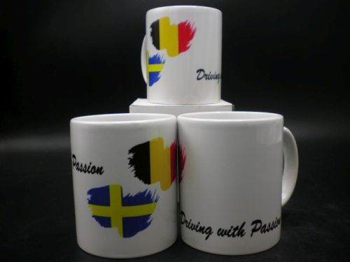 > Koffietas wit 330 ml. Delruestyle Bel. / Zweedse vlaggen