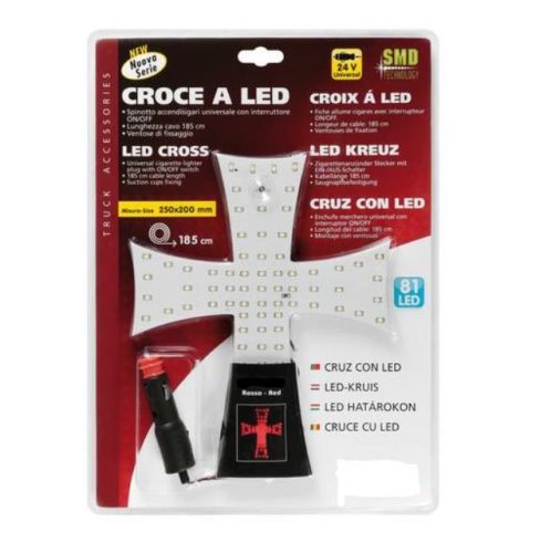 Kruis rood 81LED 24V met zuignappen25cmx20cm