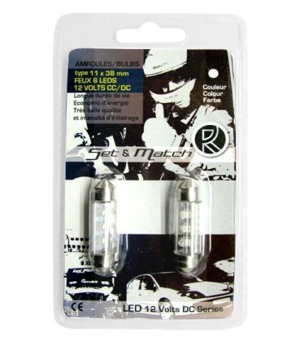 LEDlamp wit 6LED buis 11x38mm/12V (2stuks)