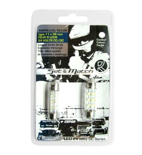 LEDlamp wit 6LED buis 11x38mm/24V (2stuks)