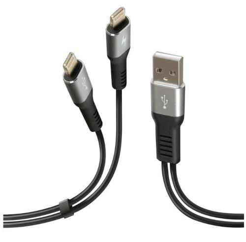 "? Kabel met dubbele connector, Usb> Apple 8 Pin - 100 cm - Zwart ? Opladen en data. ? Laad tegelijkertijd 2 apparaten op. ? Compatibel met supersnel opladen. ? Metalen frame, verstevigde hals"