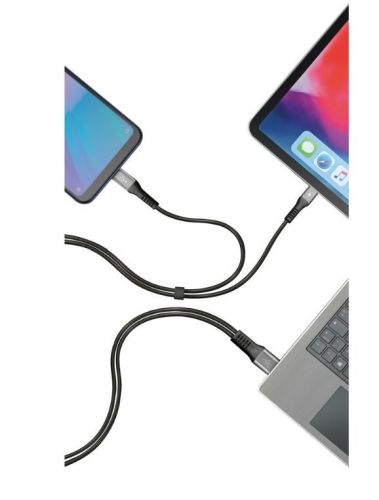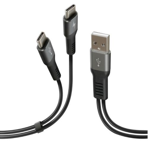 "? Kabel met dubbele connector, Usb> Type-C - 100 cm - Zwart ? Opladen en data. ? Laad tegelijkertijd 2 apparaten op. ? Compatibel met supersnel opladen. ? Metalen frame, verstevigde hals"