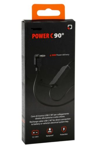 "Power C 90? - USB C oplaadkabel, directe batterijaansluiting - 12/24V Technologie voor maximale vermogensafgifte van 30 W. 180 cm kabel met SAE-connector en zekering voor directe aansluiting op de accu. Het is mogelijk om accuonderhouders aan te sluiten die gebruik maken van de SAE connector. Kortsluiting, oververhitting, overbelasting, overspanningsbeveiliging. "
