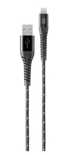 "Kabel Usb > Appel 8 Pin - 120 cm - Zwart kevlar STRONG CABLE uit de TETRAFORCE-lijn is de sterkste kabel in het Cellularline-assortiment. De flexibele kabelwartel, 30% langer en uitgerust met Snake Technology, is ultraflexibel en bestand tegen de meest extreme druk, het beschermt het meest delicate deel van de kabel door tot 30.000 buigingen te garanderen - dat is 10 keer meer dan een standaard kabel. Strong Cable is gemaakt van materialen die zijn ontworpen om maximale duurzaamheid te garanderen: metalen connectoren om schokken en druk te weerstaan, dubbel gevlochten kabelomhulsel met versterkte stof voor extreme kabelflexibiliteit en sterkte, behuizing van aluminiumlegering, zeer zuivere koperen binnenkern en DuPont&trade, Kevlar? aramidevezel. MFi-gecertificeerd voor perfecte compatibiliteit met Apple-apparaten met Lightning-connector."