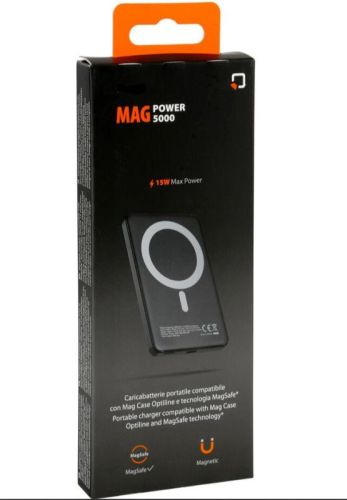 "Draagbare oplader compatibel met MagSafe-technologie Compatibel met MagSafe-technologie (iPhone 12 en hoger, opladen zonder hoesje of met MagSafe-hoesje). Bevestig de Mag Power magnetisch aan uw telefoon met draadloos opladen en laad deze op zonder dat er kabels nodig zijn. Slank en compact ontwerp."