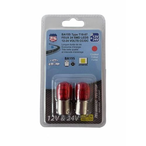 Ledlamp 24LED rood BA15S 12V/24V 480Lumen (2stuks)