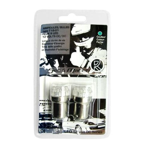 > Ledlamp 9LED groen 12V/BA15S (2stuks)