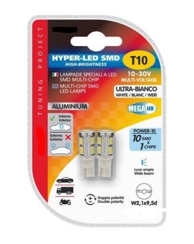 Ledlamp wit T10/12V+24V "Hyper-led"10-led SMD (2st)