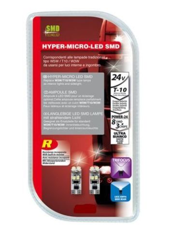 Ledlamp wit T10/24V "Hyper-micro-led" 8-led SMD (2st)