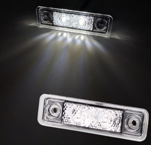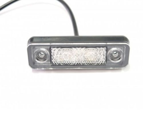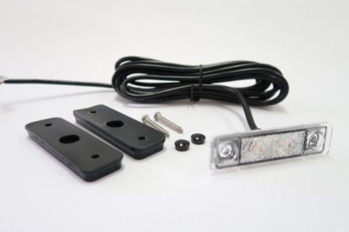 "Koud wit / Per stuk LEDSON Astral side marker with two strong LEDs behind a diamond-pattern clear glass gives a frosted light for a stylish & distinctive look! E-marked R1 (E6) and thus approved as side marker. No metal = no rust while it is of course IP67 graded which makes it waterproof. Neither requires a recessed mounting when assembling. 2 different gaskets are included: one for flat mounting and one for pipe mounting. Specifikations: Two pcs LED/dioder Diamond pattern for a frosted light IP67 waterproof, stainless and shock resistant Voltage: 12V och 24V E marked 02 R1 1055 E6 2 x gaskets and screws included (flat and tube mounting) Measure: Length: 79 mm Width: 22,2 mm Height: 6,5 mm Cable: 3 m Measure(recessed): Length: 72,4 mm Width: 17,4 mm NOTE! Should only be tightened by hand. "