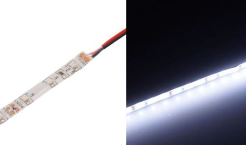 "Een flexibele, spatwaterdichte en zelfklevende LED strip met 2 meter draad. De stripe is rechtstreeks aangesloten op 24V, ofwel op een batterij of op een passende 24V DC transformator / voeding. De dubbel klevende tape van 3M zorgt voor een veilige montage op metalen, plastic en geverfde oppervlakken. Deze mag u niet op ruw hout monteren. Reinig de oppervlakken voor het aanbrengen. ? Breedte 10,0 mm ? Hoogte 2,0 mm ? Lengte 500,0 mm"