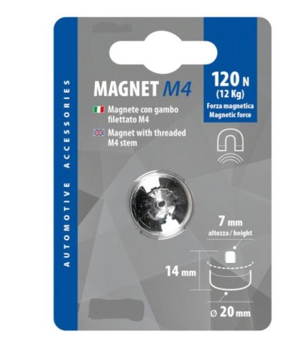 "• Magneet M4, magneet met schroefdraad M4 steel • Handig om elk voorwerp op metalen oppervlakken te bevestigen • Magnetische kracht 120N (12 kg) • Afmeting: Ø 20 x H 14 mm M4 (H 7 mm)"