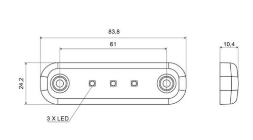 "Ultradunne opbouw / L8,4cmxH2,4cmxD1cm / IP68 / 9-36V"