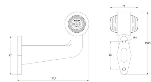 > Markeerzijlamp haaks zijkant 18cm rood/wit