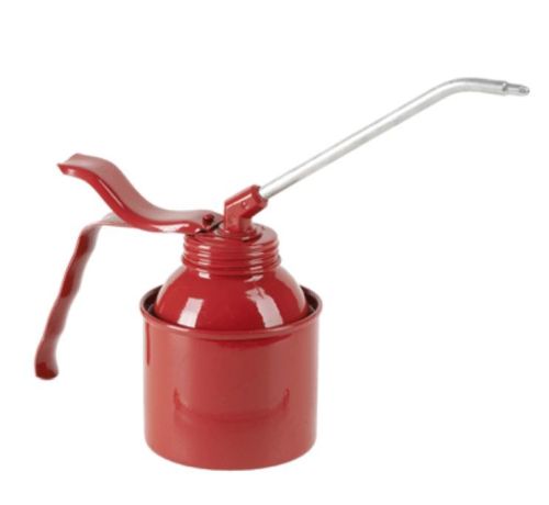 Metalen oliekan met pomp 200 ml Carrosserie van gelakt plaatstaal Ergonomische handgreep Metalen tuit Tankinhoud 200ml Perfect voor mechanische werkplaatsen of doe-het-zelf smeerwerkzaamheden