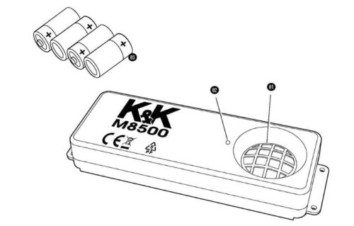 "? Ultrasoon apparaat voor carport ? Werkt op 4 batterijen LR14 (+/- 8 maanden) inbegrepen ? Afstand: ~200m. ? Kracht: ~100dB ? 21cm x 7cm x 3,3cm"