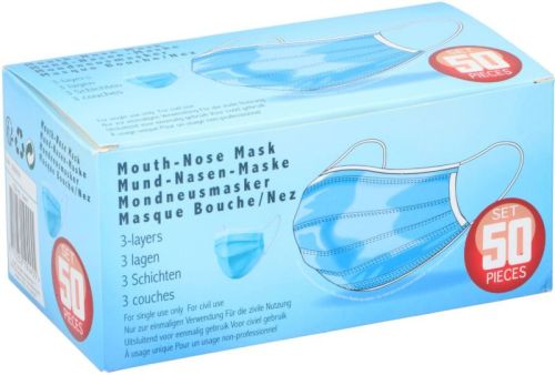 "50 STUKS / 28g ? Ergonomisch geplooid ontwerp ? Comfortabele binnenkant ? Lichtgewicht ? Hypoallergeen ? Latexvrij ? Perfecte aansluiting dankzij metalen clip ? Zeer lage ademweerstand ? Geurloos ? Voldoet aan MDR 2017/745/EU ? Class I - EN 14683 1. Beschermende laag (buitenkant) Niet-geweven stof 2. Beschermende laag, gespoten filter (Melt Blown) 3. Beschermende laag, Niet-geweven zachte stof "