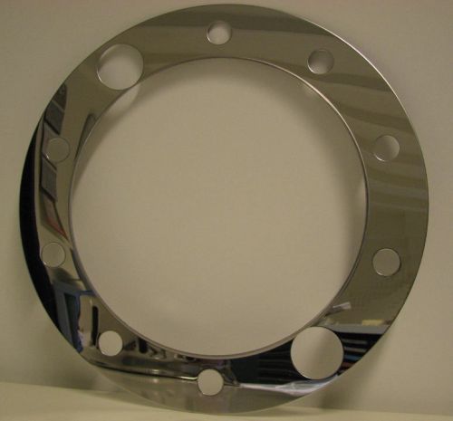 Deze dikke INOX ring die mee onder de bestaande bouten wordt geschroefd wordt gebruikt om ref. 03383084 te monteren. Deze ring kan ook worden gebruikt als bijkomende versteviging bij de montage van een diepe America simulator zoals onze ref. 03376933 & 03381820. Deze glanzend gepolijste ring kan ook op zichtzelf (zonder simulator of naafpot) worden gemonteerd als sierelement onder de wielmoeren. Per stuk! ? montagegaten 32mm