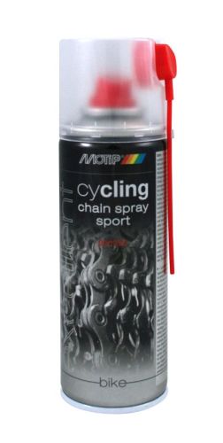 "Smeermiddel met keramiekdeeltjes voor het behandelen van kettingen en tandwielen van fietsen. Chain spray sport heeft een lage wrijvingsco?ffici?nt voor minimale weerstand met behoud van de uitstekende smerende werking, ook bij zware belasting. Speciaal ontwikkeld voor kettingen en tandwielen van racefietsen, crossbikes en mountainbikes. Bij zware condities adviseren wij MoTip Cycling Chain Spray Ultra te gebruiken. Chain spray sport is waterafstotend en bestand tegen weersinvloeden. MoTip Chain Spray Sport voorkomt slijtage en vermindert de vuilaanhechting."
