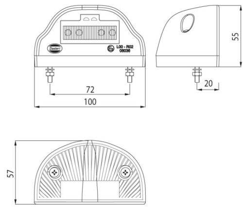 "L10,2cm x B5,5cm x H5,7cm /Nummerplaatverlichting LED-wit + 2x led rood positielicht / prijs per stuk"