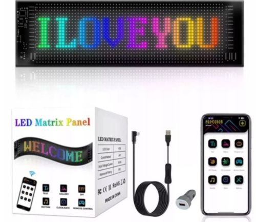 "LED-paneel MATRIX 59,5 x 12 cm USB 7,5 W, 1526 LED's - CE-certificaat Een multifunctioneel full-color LED-paneel, ontworpen om visuele content te presenteren op diverse voertuigen. Ideaal voor vrachtwagens, bestelwagens, auto's, campers, maar ook voor etalages en andere glazen oppervlakken. Belangrijkste kenmerken: ? Programmeerbaar LED-scherm met een resolutie van 16x96 pixels (1536 LED's) ? ideaal voor het weergeven van tekst, afbeeldingen, animaties of lichteffecten. ? Bediening via een mobiele applicatie vanaf een smartphone (Bluetooth) ? eenvoudige en intu?tieve configuratie van effecten. ? Afstandsbediening ? biedt snelle toegang tot functies zonder dat u uw telefoon hoeft te pakken. ? Meerkleurig RGB-effect ? volledig kleurenpalet voor maximale zichtbaarheid en impact. ? Voeding 5V 2A (7,4 W) ? energiezuinige werking met een lange USB-kabel (4,5 m) voor eenvoudige aansluiting. ? Compact formaat ? slechts 12 ? 59,5 cm, wat flexibele installatie op diverse oppervlakken mogelijk maakt. ? IP65 waterdicht ? ideaal voor buitengebruik, bestand tegen regen en stof. ? Hoogwaardige materialen ? gemaakt van flexibel PU en FPCB, wat duurzaamheid en eenvoudige installatie garandeert, bijvoorbeeld op ramen."