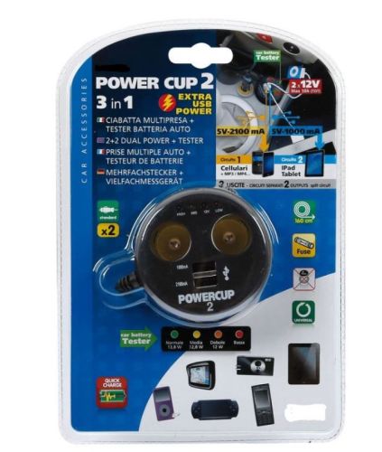 Power cup "3in1" 2-weg/USB/batterijtester