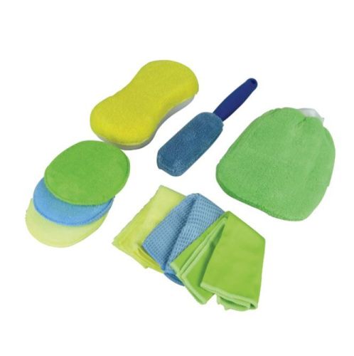 Bevat: 3x microfiber doek + 3x microfiber pad + microfiber spons + microfiber washandschoen + microfiber velgenborstel